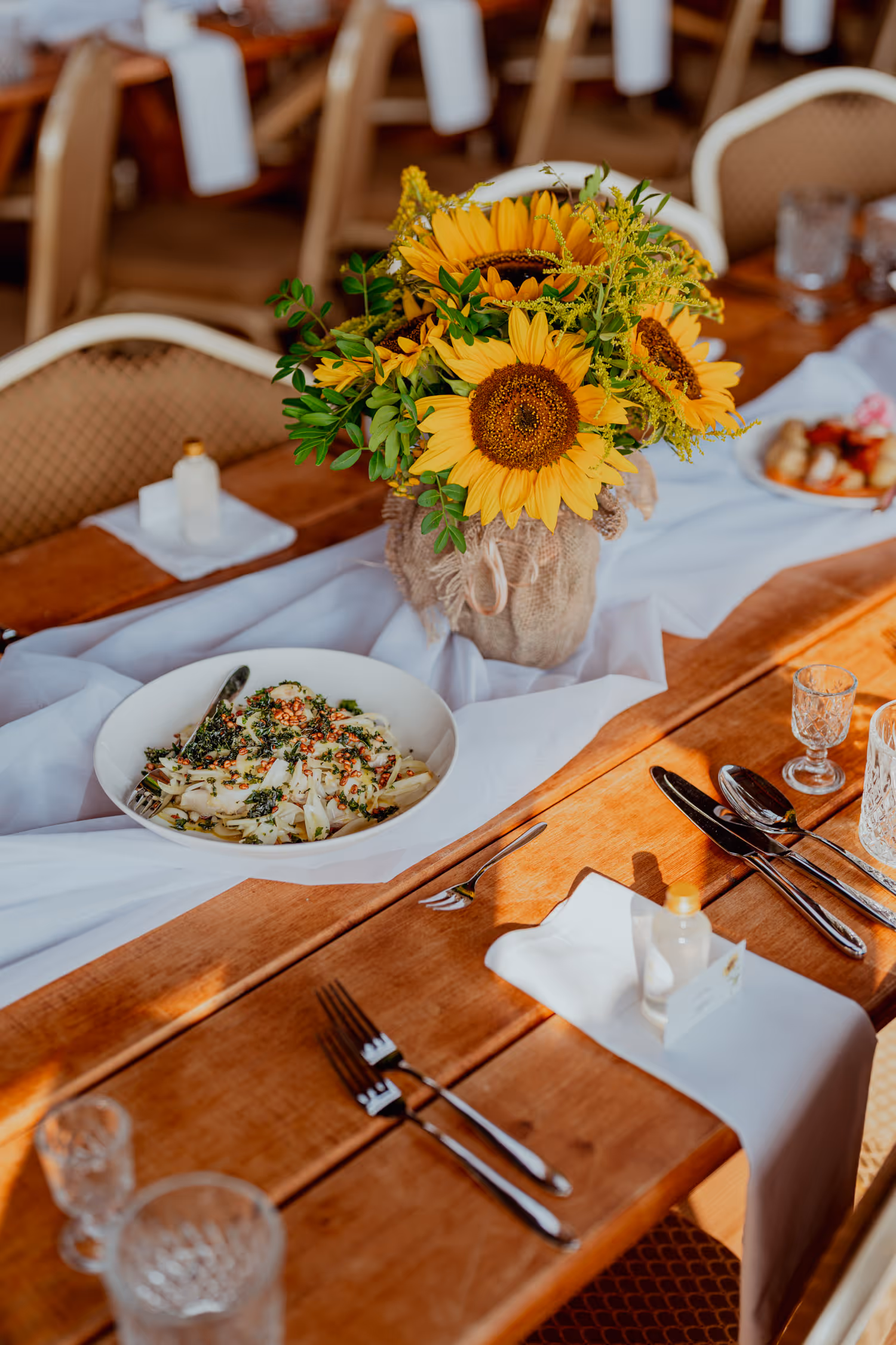 W rustykalnej stodole w Lipniaku przygotowaliśmy catering weselny w klimacie włoskiej fiesty. Menu oparte na kuchni włoskiej łączyło antipasti, eleganckie finger foody, serwowane dania główne oraz desery. Dzięki spójnej aranżacji i dbałości o detale całość nabrała charakteru prawdziwego włoskiego wesela, pozwalając naszym gościom poczuć się jak na matrimonio all’italiana, w pełnym dolce vita.